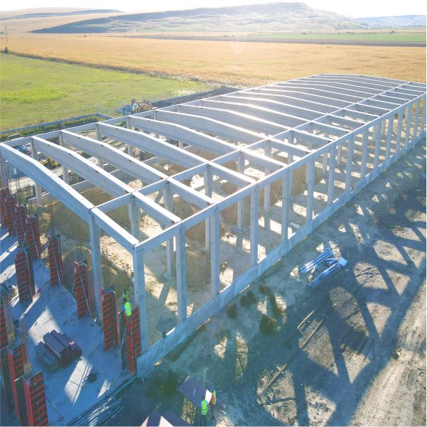 O hală industrială cu o suprafață desfășurată de 3.200 mp, realizată pe o structură clasică, reprezintă unul dintre proiectele de dimensiune medie finalizate recent. Pentru această lucrare a fost utilizată o cantitate totală de 500 m³ de beton prefabricat, iar structura a fost completată de colaboratorii noștri prin montarea contravântuirilor metalice, asigurând stabilitatea și rezistența necesare construcției.